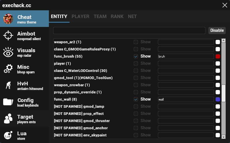 Full entity esp - switch any entity and even map details, customize color and name for each entity (wow, its unique feature).