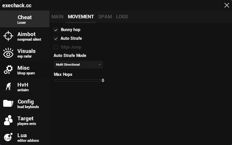 Stable work, exechack was detectet with less than 3 lines of code due to pasting lua cheats for last 5 years.