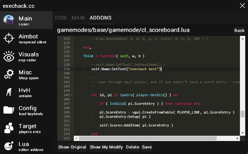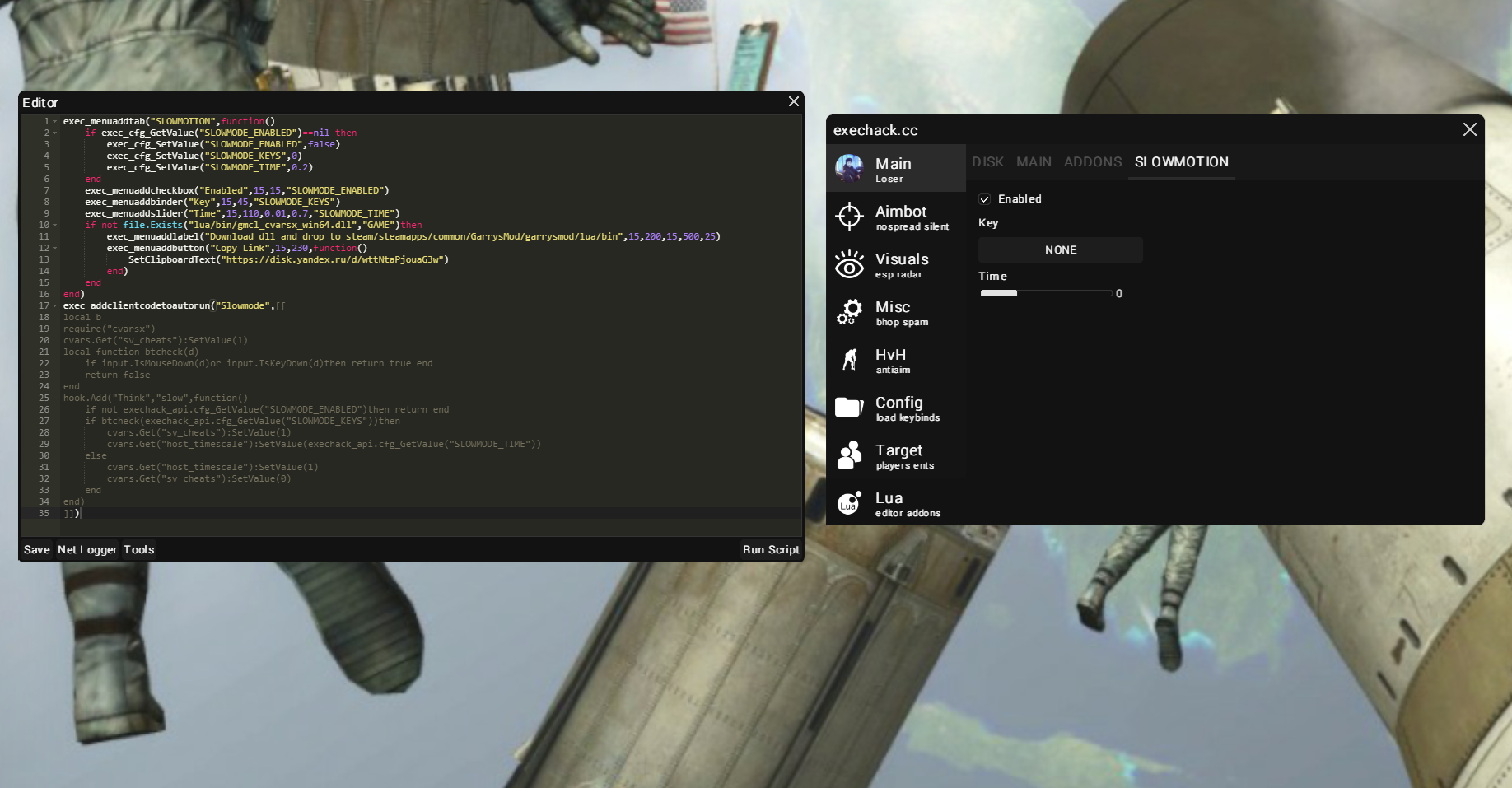 Editor - convenient script writing with obfuscator, minifier, beautifier, netlogger, encryption of scripts to password. For running on menustate and clientstate. Editing or disabling any clientstate server code (open source js script lol).